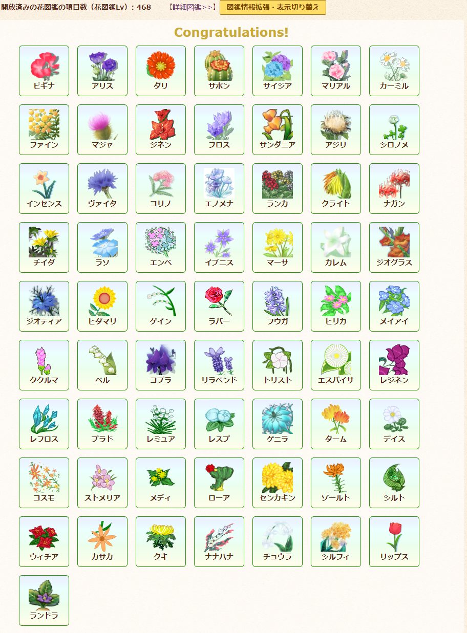 やっぱり花図鑑全部埋まると気持ちいいんですからね。